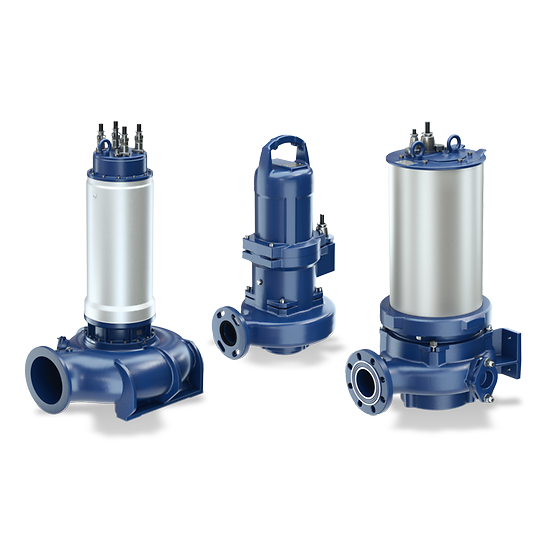 Horizontal or vertical single-stage submersible motor pump in close-coupled design, with various next-generation impeller types, for wet or dry installation, stationary or transportable version, with energy-saving motor and models for use in potentially explosive atmospheres.
