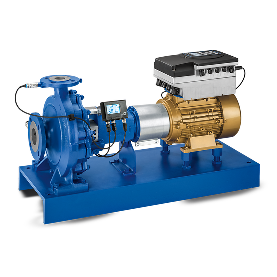 Horizontal volute casing pump, single-stage, with ratings and main dimensions to EN 733, long-coupled, back pull-out design, with replaceable shaft sleeves / shaft protecting sleeves and casing wear rings, with motor-mounted variable speed system. With KSB SuPremE, a magnetless synchronous reluctance motor of efficiency class IE4/IE5 to IEC TS 60034-30-2:2016, for operation with the KSB PumpDrive 2 or KSB PumpDrive 2 Eco variable speed system without rotor position sensors. Motor mounting points in accordance with EN 50347, envelope dimensions in accordance with DIN V 42673 (07-2011). ATEX-compliant version available.